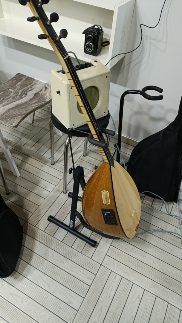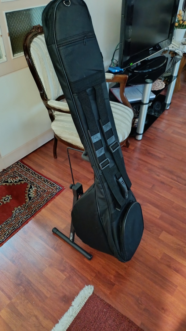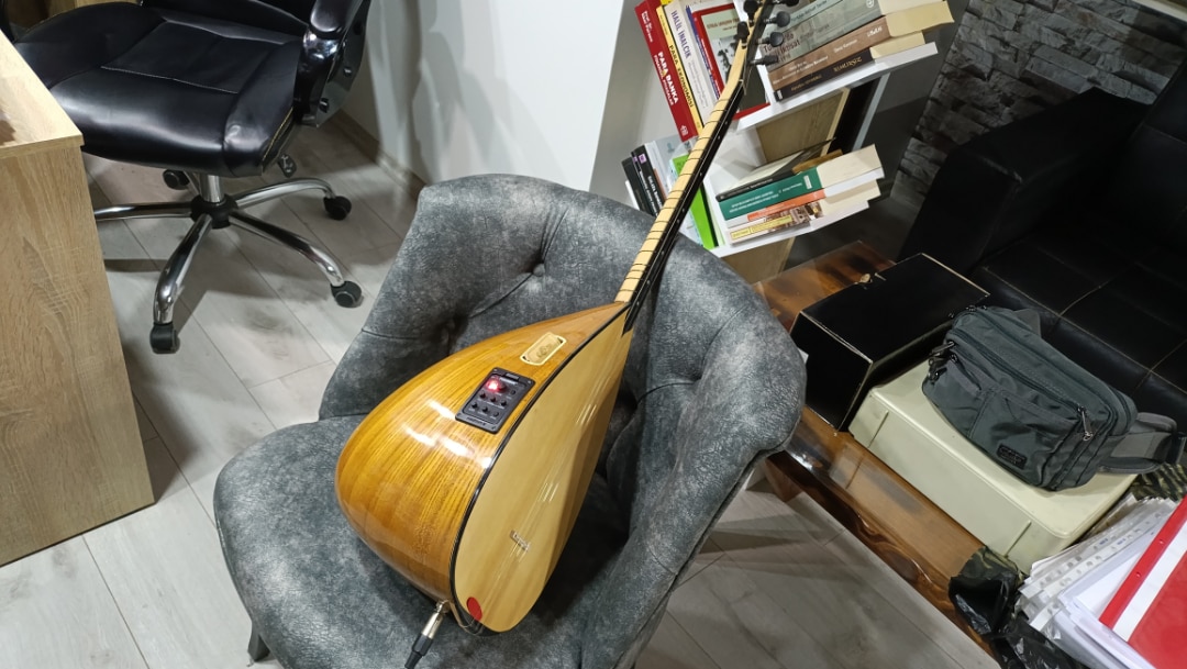 Bağlamanın sesini ve görüntüsünü duymak istedim, bana WhatsApp üzerinden video gönderdiler. Videodaki bağlamayı beğendim ve aynısı gönderildi. Karton kutunun içinde, fotoğrafta görülen kalın, el ve sırt taşıma aparatlı, şifreli kilitli, fermuarlı, koruyucu kılıf içinde bağlama vardı. Kılıfın fermuarlı ön cebinden ayrıca bir takım pyramid tel, çeşitli mızraplar ve kablo da çıktı. Bağlamanın en önemli yanı Fishman ekolayzırlı olması, pilini takmışlar, testlerini yapmışlar öyle göndermişler.