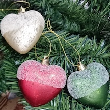 Profesyonel Vıp Kalite 7 Cm 6 Adet Parlak Simli Karlı Renkli Kalpli Yılbaşı Ağacı Süsleri Vitrin Süsleri Renkli Yılbaşı Kalpli Süsler Kalpli Renkli No