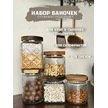 Vakum Kapaklı Cam Kavanoz Seti-akasya Standlı 4'lü Mutfak Organizeri Baharatlık Şeffaf