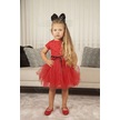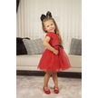 Puantiyeli Kız Çocuk Kısa Kollu Doğum Günü Ve Özel Günler İçin Tüllü Elbise Kısakol-kırmızı Kırmızı