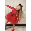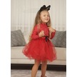 Puantiyeli Kız Çocuk Uzun Kollu Doğum Günü Ve Özel Günler İçin Tüllü Elbise Kırmızı