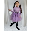 Puantiyeli Kız Çocuk Uzun Kollu Doğum Günü Ve Özel Günler İçin Tüllü Elbise Lila