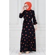 Kadın Puantiyeli Siyah Renk Viskon Kumaş Ön Düğmeli Ayarlanabilir Kuşaklı Tesettür Elbise Siyah