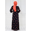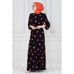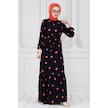 Düğme Detaylı Çiçekli Viskon Elbise - Siyah / E0123 Siyah