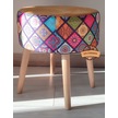 Puf Koltuk Tabure - Mandala Baskı Dallas Kumaş - Ahşap Gürgen Ay