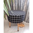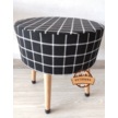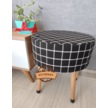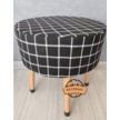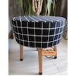 Puf Koltuk Tabure - Siyah Üstü Beyaz Örme Ekose - Ahşap Gürgen Ay