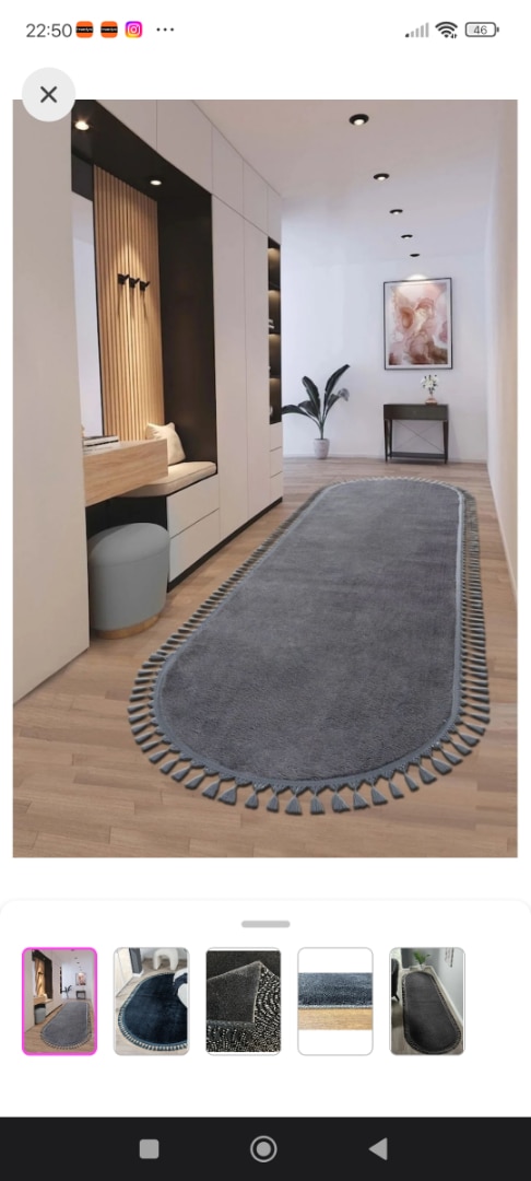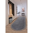 Puffy Gri Oval Örgü Saçaklı Peluş Yumuşacık Yıkanabilir Kaymaz Taban Halı Salon Oturma Odası Antrasit