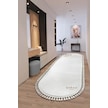 Puffy Gri Oval Örgü Saçaklı Peluş Yumuşacık Yıkanabilir Kaymaz Taban Halı Salon Oturma Odası Beyaz