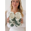 Puffy Kadın Ev Terliği Kışlık Terlik Kauçuk Ses Yapmaz Taban Yeşil