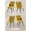 Puffy Sandalye - Babyface Sarı- Metal Siyah Ayak 4 Adet - Salon Sandalyesi / Mutfak Sandalyesi Sarı
