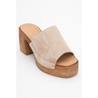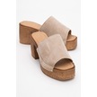 Pull Bej Süet Hakiki Deri Kadın Platform Topuklu Terlik Bej