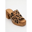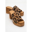 Pull Siyah Sarı Desenli Hakiki Deri Kadın Platform Topuklu Terlik Leopar