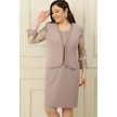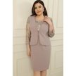 Pulpayet-tül Detaylı Astarlı Elbise Ceket Büyük Beden 2'li Takım-34868 Bej