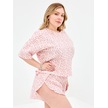 Büyük Beden Battal Pijama Takımı Desenli Uzun Kol Kışlık Kumaş Pembe