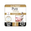 Pure Baby Organik Pamuklu Cırtlı Bez 4'lü Paket 2 Numara Mini 272 Adet 4'lü