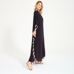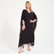 Püskül Detaylı V Yaka Uzun Plaj Elbisesi Siyah-Standart Siyah