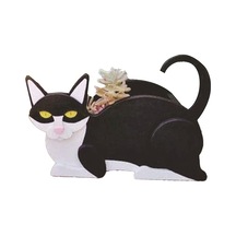 Pvc Materyal Kedi Şekilli Bahçe Süs Bitki Kabı, Sürekli Kullanım, Dış Mekan Dekorasyonu, 30.48x17.78x12.7cm, Siyah-beyaz