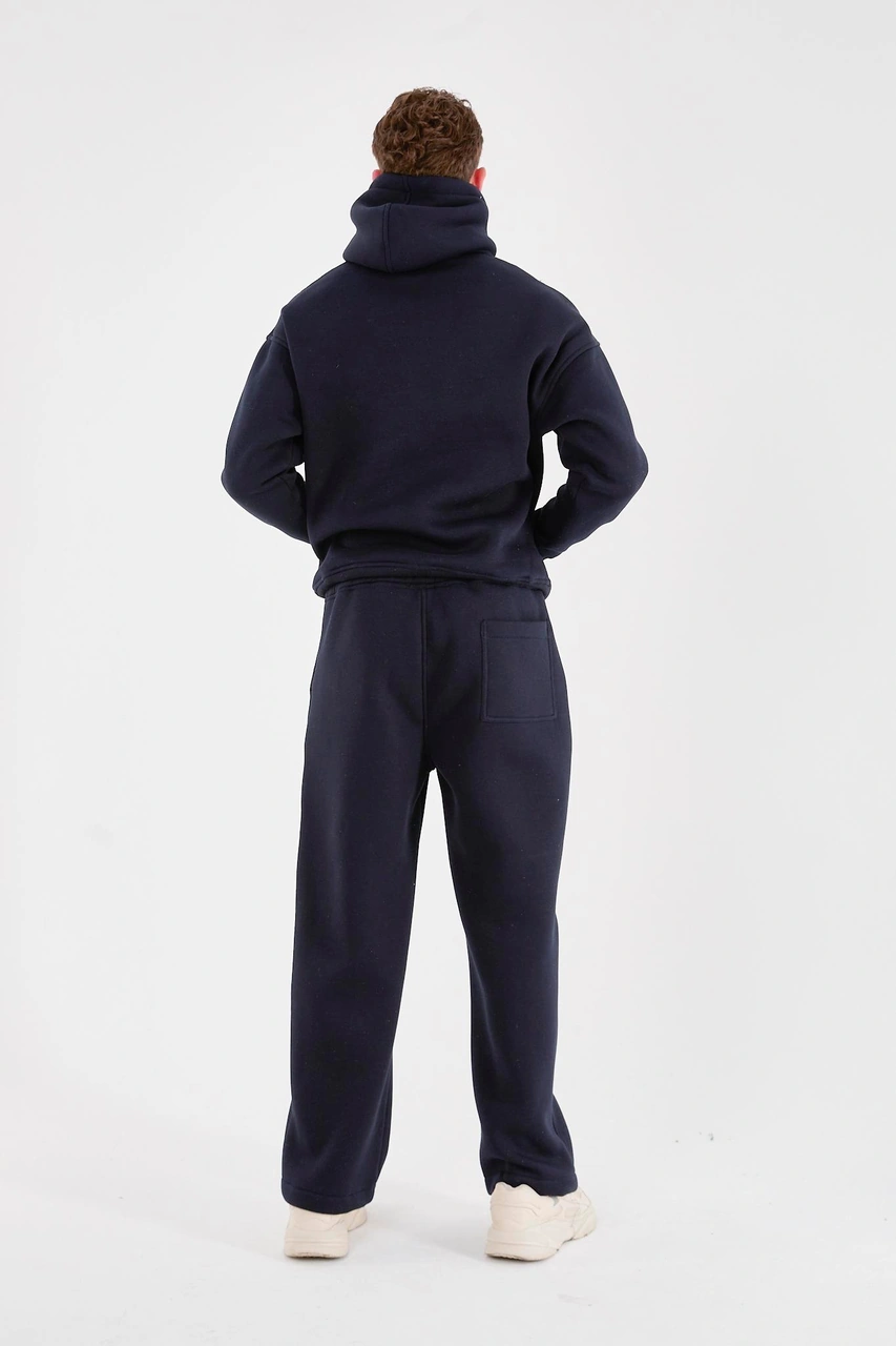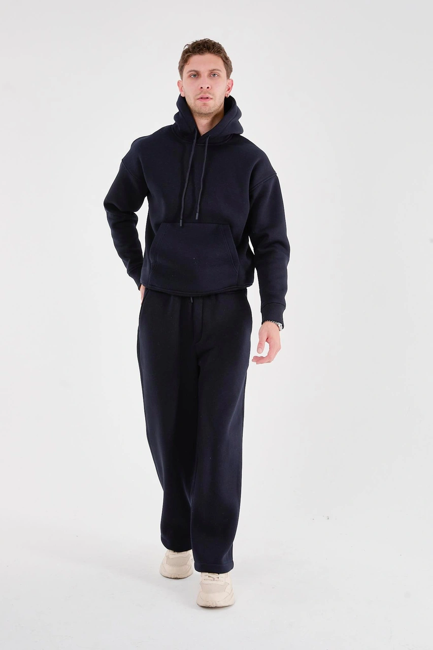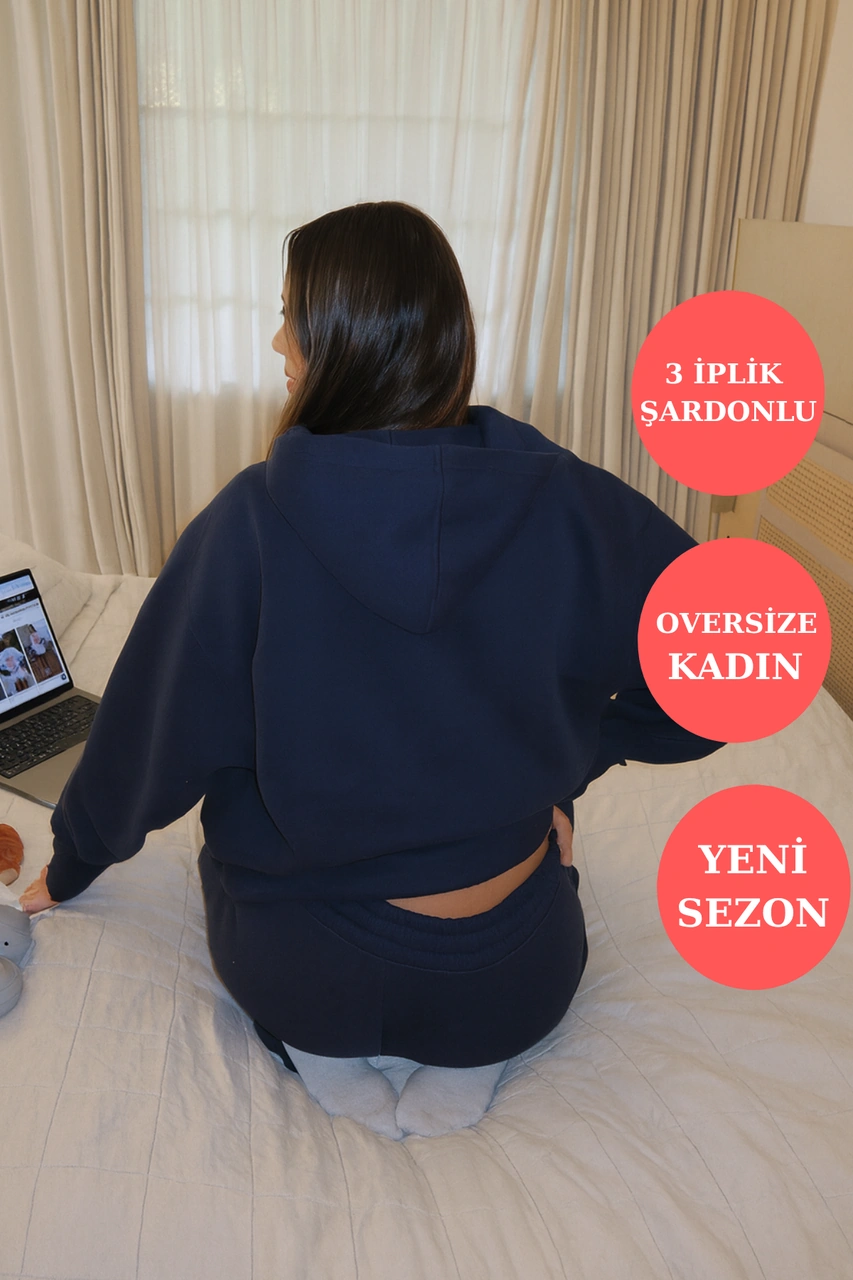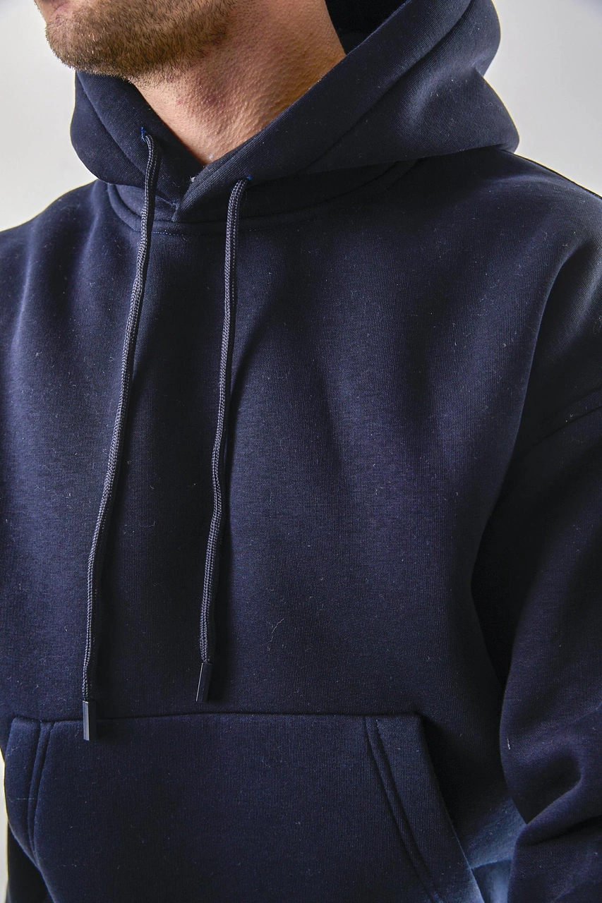 Q-4008 Kapüşonlu Üç İp Şardonlu Sweat Lacivert