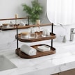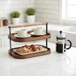 Qerhome 2 Katlı Akasya Stand / Sunumluk / Çok Amaçlı Organizer Doğal Ahşap İki Katlı Servis Ahşap