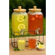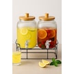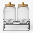 Qerhome 2'li Cam Şerbetlik Seti Musluklu, Bambu Kapaklı, Standlı 3.75 Lt + 3.75 Lt