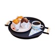 Qerhome 37cm Ahşap Kulplu Siyah Metal Tepsi Yuvarlak Tepsi Çay Sunum Tepsisi Siyah