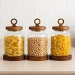 Qerhome 3'lü Borosilikat Cam Akasya Kapaklı Erzak Baharat Kavanozu 1100 Ml Şeffaf