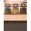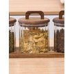 Qerhome 3'lü Borosilikat Cam Akasya Stantlı Akasya Kapaklı Çizgili Baharatlık 600 Ml ŞEffaf