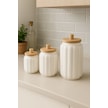 Qerhome Ahşap Kapaklı Seramik Bombeli 3 Boy Kavanoz Seti 500-750-1000 Ml Şeffaf