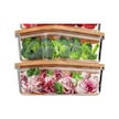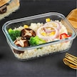 Qerhome Bambu Kapaklı 2'li Diktörtgen Vakumlu Kase Cam Saklama Kabı 1000 Ml Şeffaf