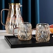 Qerhome Borosilikat Amber Cam Gold Kapaklı Sürahi 1900 Ml & 2 Adet Borosilikat Cam Kupa 450 Ml Mrc