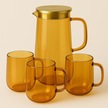 Qerhome Borosilikat Cam Amber Su Takımı 4 Bardaklı 1600 Ml + 400 Ml Gnl