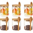 Qerhome Borosilikat Cam Bambu Kapaklı Ve Bambu Kaşıklı Baharat Seti 6 Adet 450ml ŞEffaf