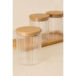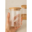 Qerhome Borosilikat Cam Bambu Stantlı Ve Bambu Kapaklı Optik Çizgili Baharatlık Seti 430 Ml Alg11520 Beyaz