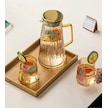 Qerhome Borosilikat Cam Sürahi Takım Elio 6 Bardaklı Gold 1800 Ml