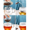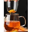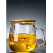 Qerhome Borosilikat Cam Süzgeçli Bambu Kapaklı Kupa 350 Ml Şeffaf
