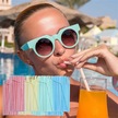 Qingmipy 300 Adet 8 İnç Renkli Çizgili Esnek Plastik Pipetler