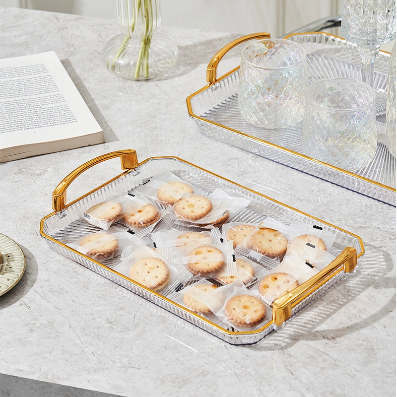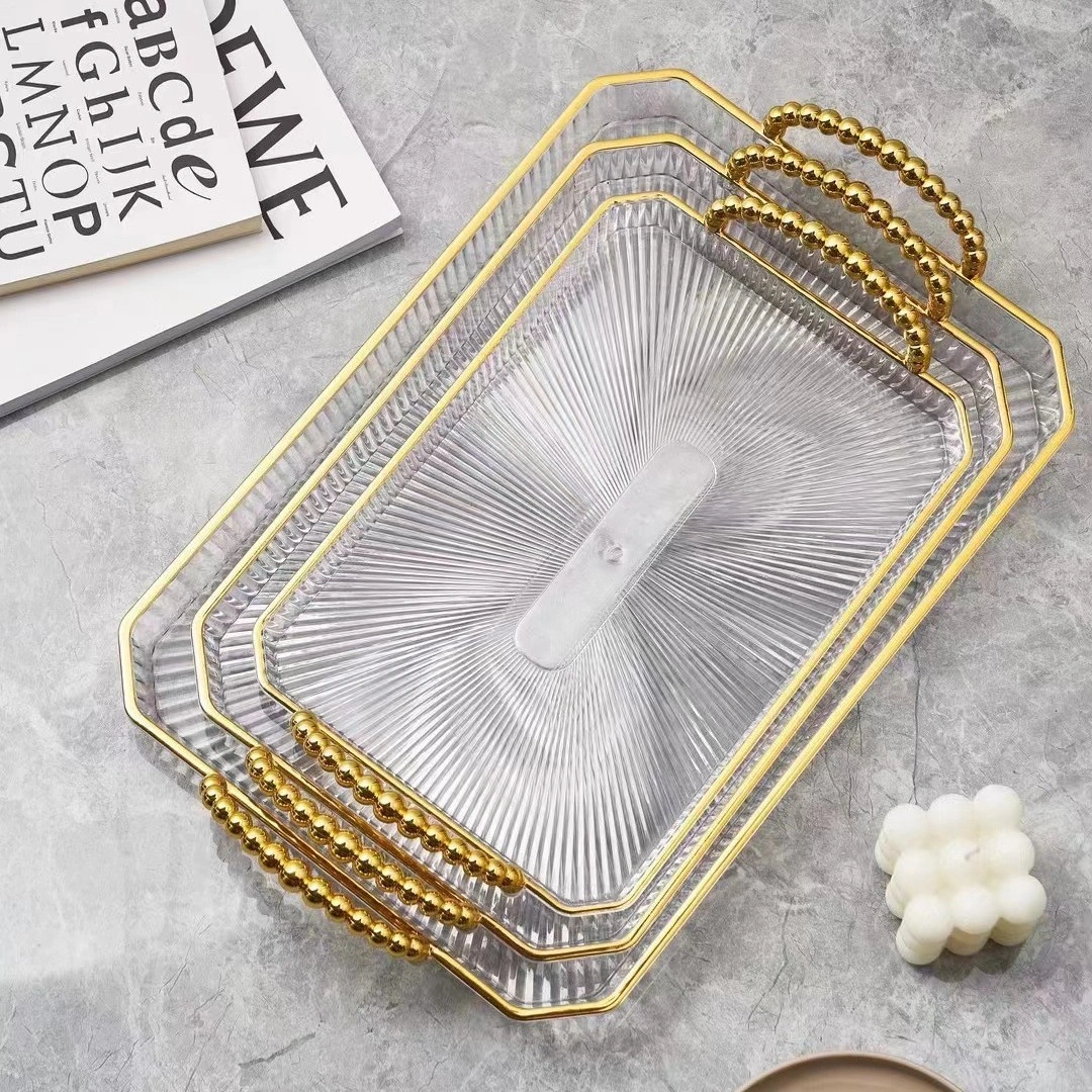 Qingmipy Gümüş Altın Kaplama Çok Amaçlı Servis Tabağı - Meyve, Çay, Pastane, Kek Tepsi Ve Aksesuar Tutucu - Büyük Boy 40.7x27.6x5.5 Cm