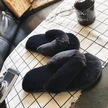 Qingmipy Kadınlar İçin Kışlık Ev Terliği Tavşan Tüyü Yumuşak Kaymaz Ön Pvc Taban Siyah 41/42 Numara Siyah
