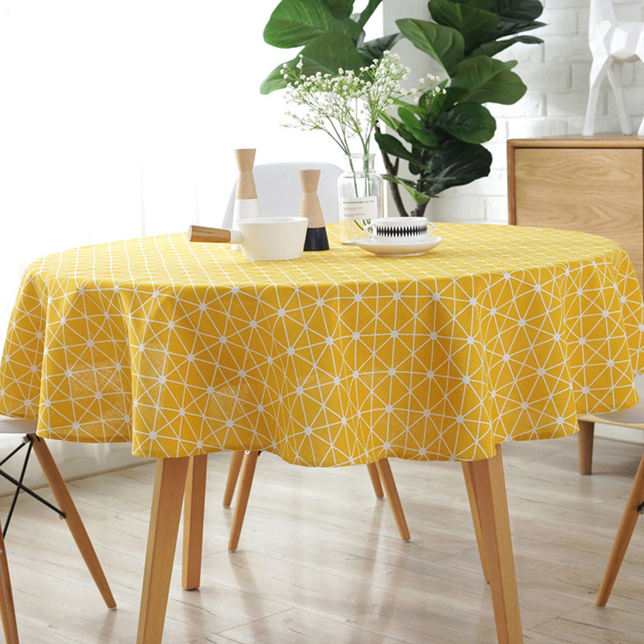 Qingmipy Kuzey Avrupa Stili Daire Masa Örtüsü, Triko-pamuk Karışımı, Renkli Triangel-m-ok Desenli, Yırtılmaya Dayanıklı, Yıkama Kolay, 120 Cm Çaplı Sari
