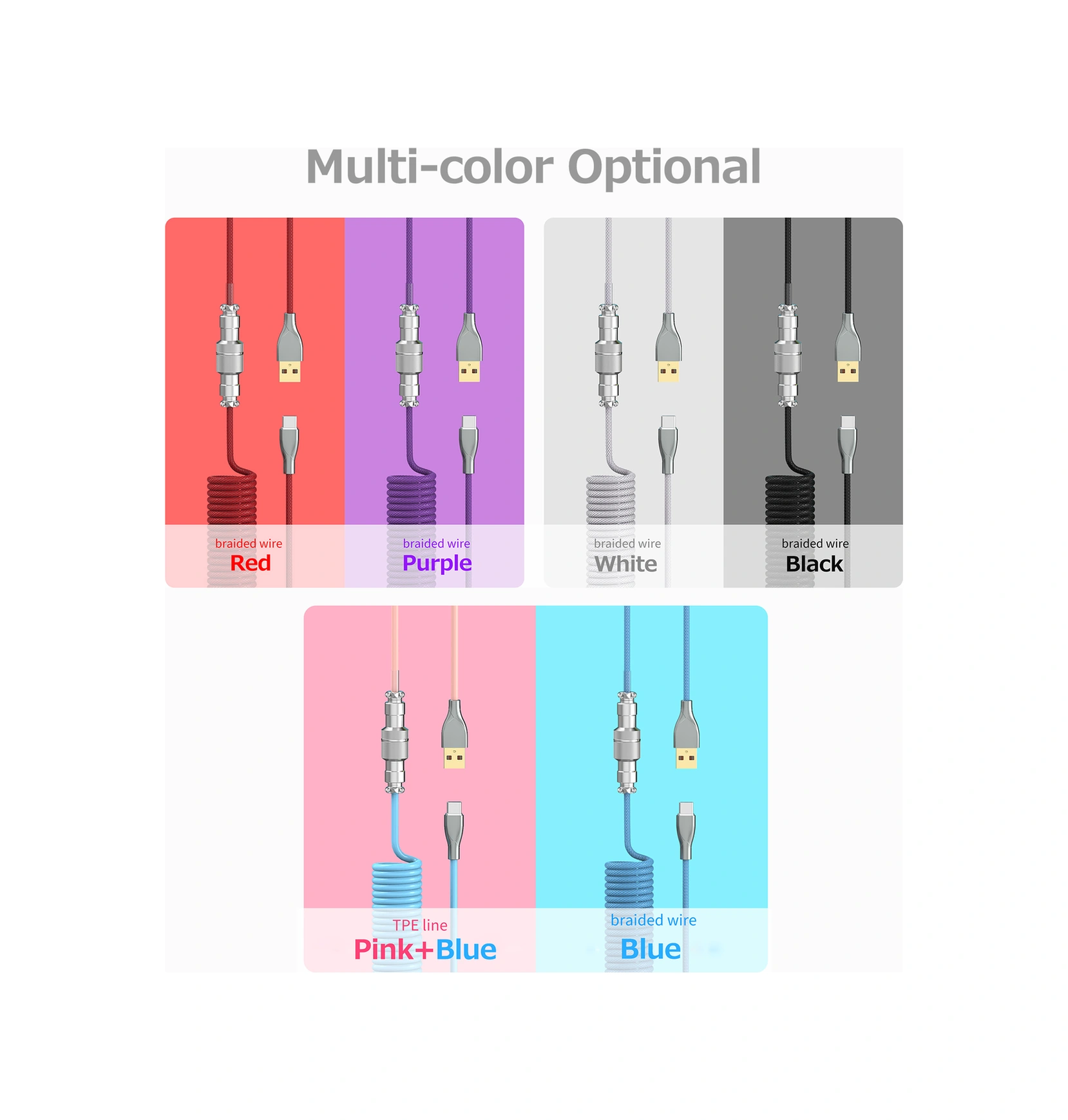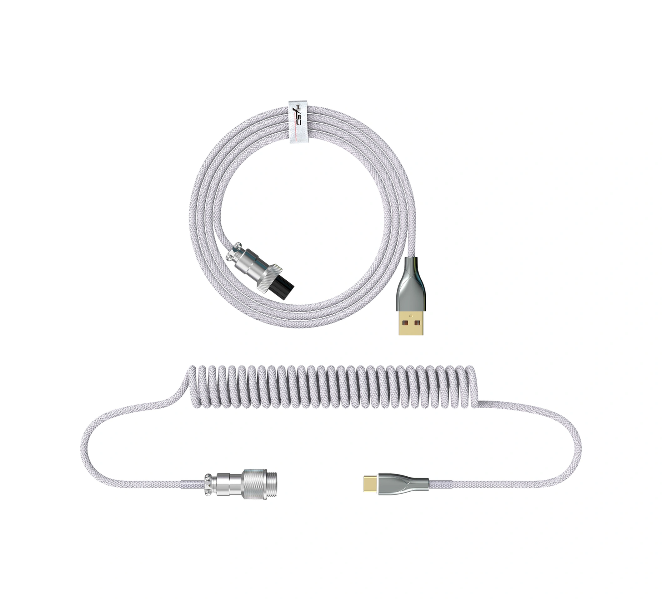 Qingmipy Mekanik Klavye İçin Genişletilebilir Nilon Örgü Kablosu - Usb'den Type-c'ye Çevirici Beyaz