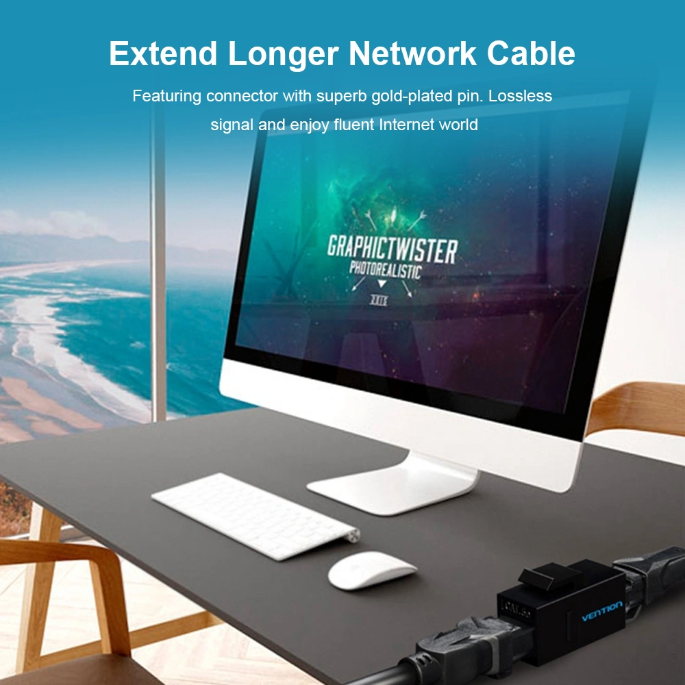 Qingmipy Ventıon Rj45 Ağ Kablosu Çoğaltıcı, Altın Kaplı Pimli Abs Malzeme, Ağ Kablosunu Kolayca Uzatmak İçin Çift Taraflı Bağlayıcı - Siyah