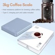 Qingmipy Yüksek Hassasiyetli Dijital Kahve Terazisi: Zamanlayıcılı, Usb Şarjlı, 3kg Kapasiteli, Led Ekran, Oz/ml/g Ölçümü Açık Mavi