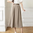 Qooth Bahar Kadın Yüksek Bel A-line Sashes Etek 2022 Yeni Stil Zarif Orta Uzunlukta Uzun Ofis Bayan Düz Etek Haki