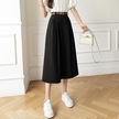 Qooth Bahar Kadın Yüksek Bel A-line Sashes Etek 2022 Yeni Stil Zarif Orta Uzunlukta Uzun Ofis Bayan Düz Etek Siyah