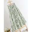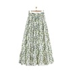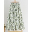 Qooth İlkbahar Yaz Kadın Yüksek Belli Çiçek Baskılı Etekler Elastik Bel Zarif Rahat Keten Pamuk Midi Yeşil Etekler Qt1712 Yeşil