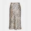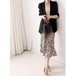 Qooth Kadın Yaz Yüksek Bel Saten Leopar A-line Etek Zarif Vintage Retro Moda Midi Etek Qt1823 Leopar