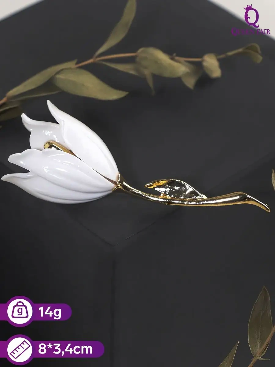 Queen Fair Kadın Broş Şık Orijinal 19888541 Beyaz