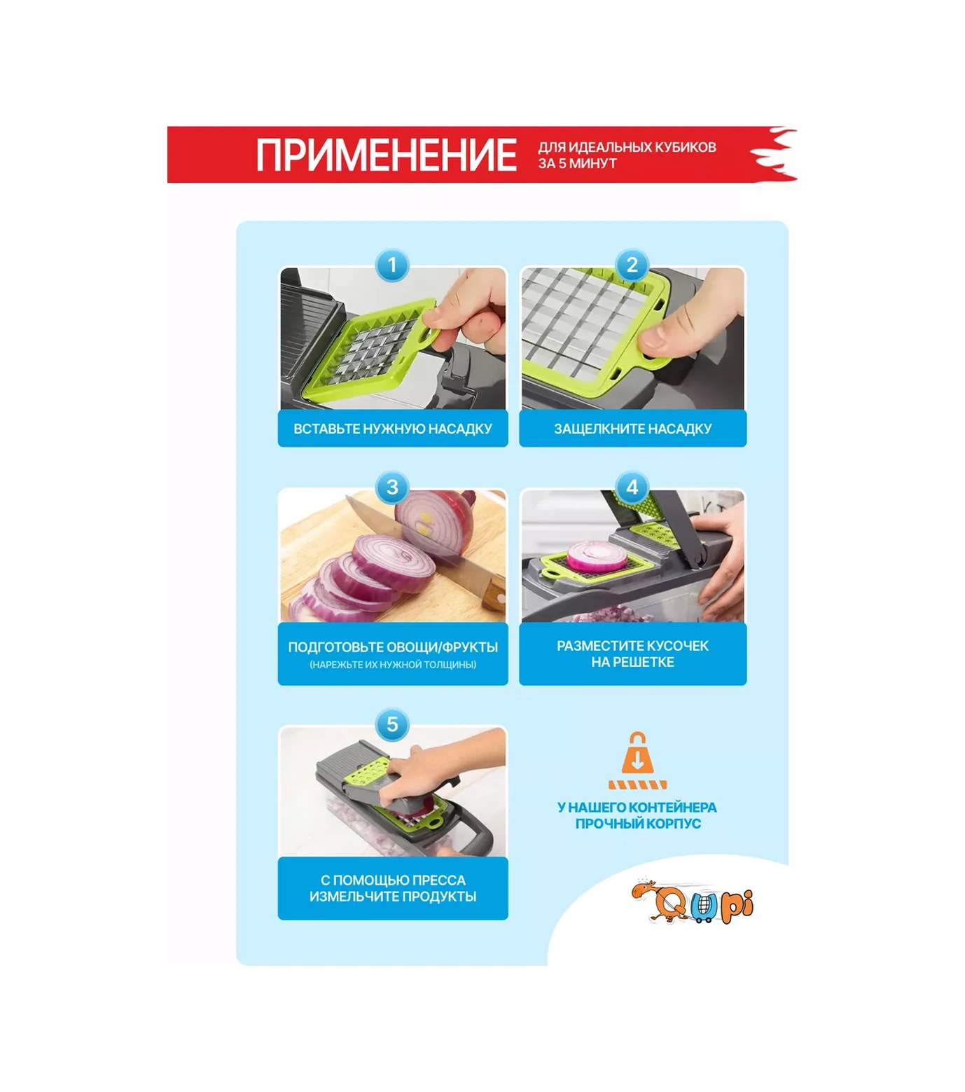 Qupi Sebze Dilimleyici El Tipi Küp Sebzeler İçin Doğrayıcı 30374835 Gri
