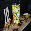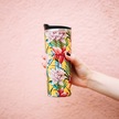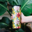 Qwetch QM6015 Tropik Çiçek Desenli Isı Yalıtımlı 470 ML Termos Mug- Sarı