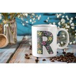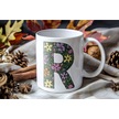 R Baş Harf Çiçek Desenleri İle Natural Tarz Kupa Bardak - Kişiye Özel Çiçekli Kahve Çay Bardak - Beyaz